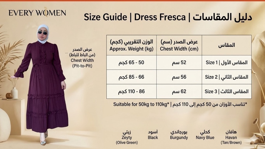 مقاسات متنوعة تناسب الجميع