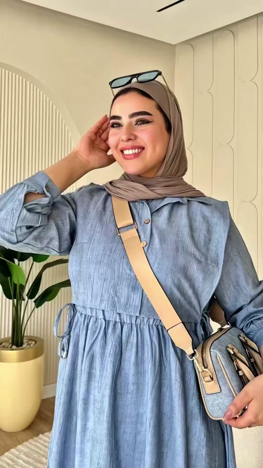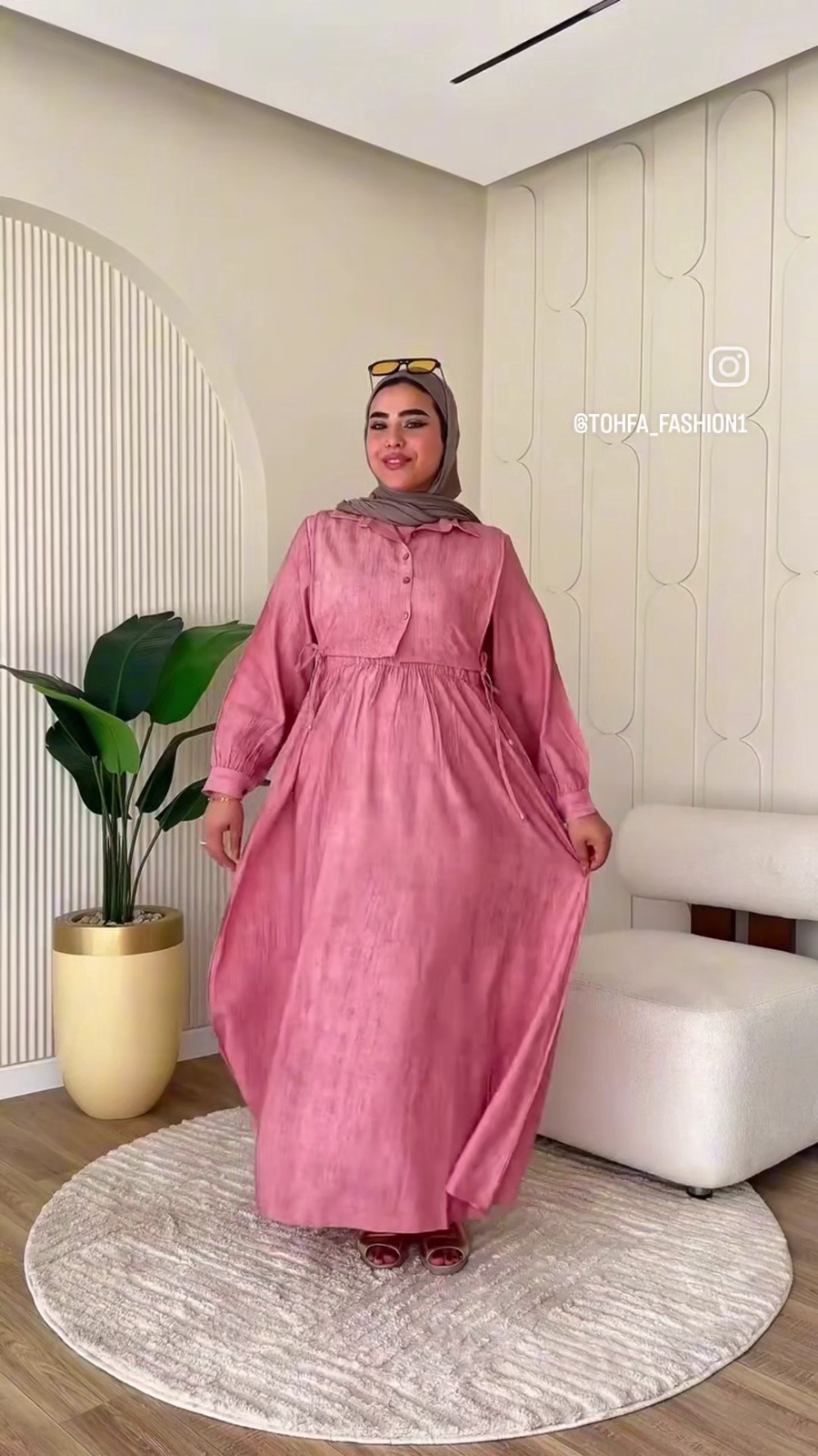 الميزة إنها معالجة ضد الانكماش، يعني تغسليه وتلبسيه وأنتِ مطمنة. كمان، هي خامة مريحة جدًا في حر 🔥الصيف ، وبتخلي الجسم يتنفس.